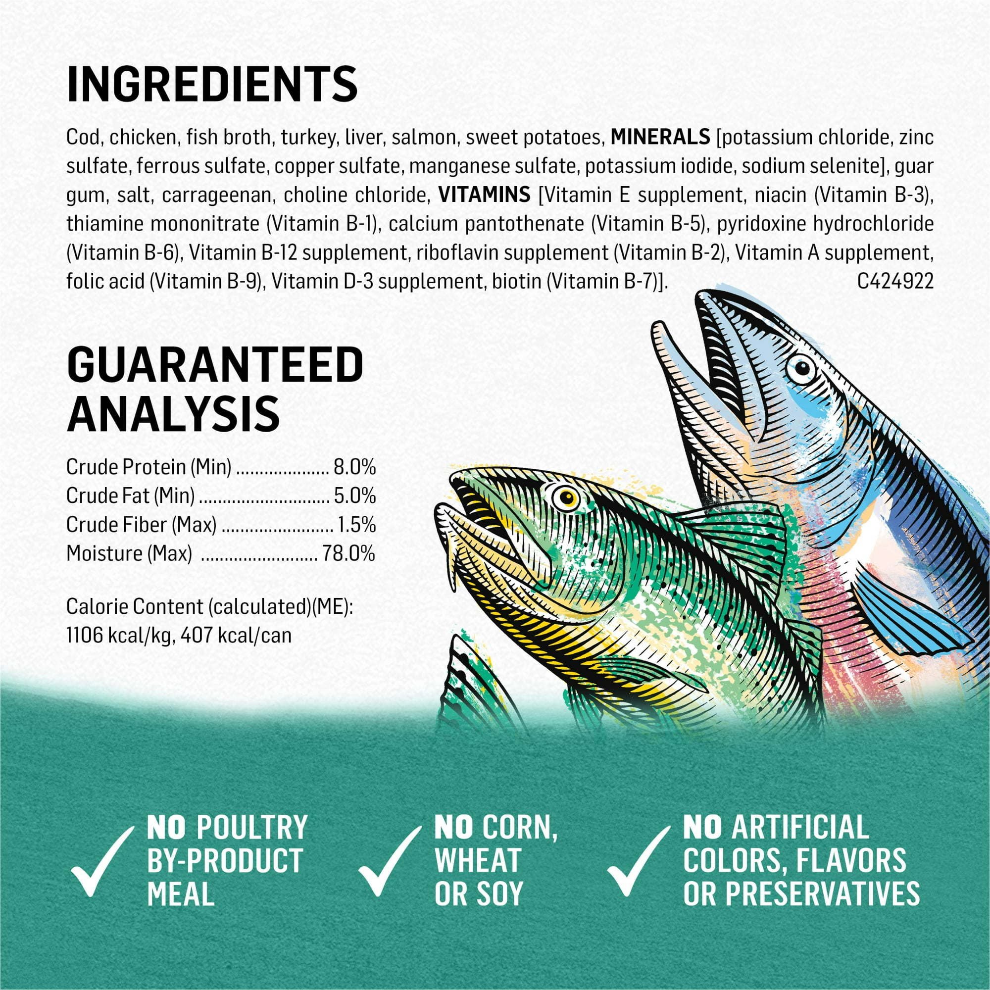 Fill your dog's bowl with wholesome goodness when you choose this Purina Beyond Grain Free Alaskan Cod, Salmon & Sweet Potato Recipe Ground Entree adult wet dog food for his menu. We craft this high protein wet dog food with purposely selected, recognizable ingredients from our trusted sources. Line-caught Alaskan cod is the #1 ingredient in this tasty grain free wet dog food recipe with salmon and sweet potato that also contains natural prebiotic fiber. To meet your high standards, we make this dog food with fish responsibly sourced from fisheries that earn the MSC certification. Our pet nutritionists formulate this grain free natural dog food with added vitamins and minerals to deliver complete and balanced nutrition to help support your adult dog's long life. The high protein, grain free dog food recipe includes no corn, wheat, soy or poultry-by-product meal and no artificial colors, flavors or preservatives, so he gets the nourishment he needs and nothing he doesn't.